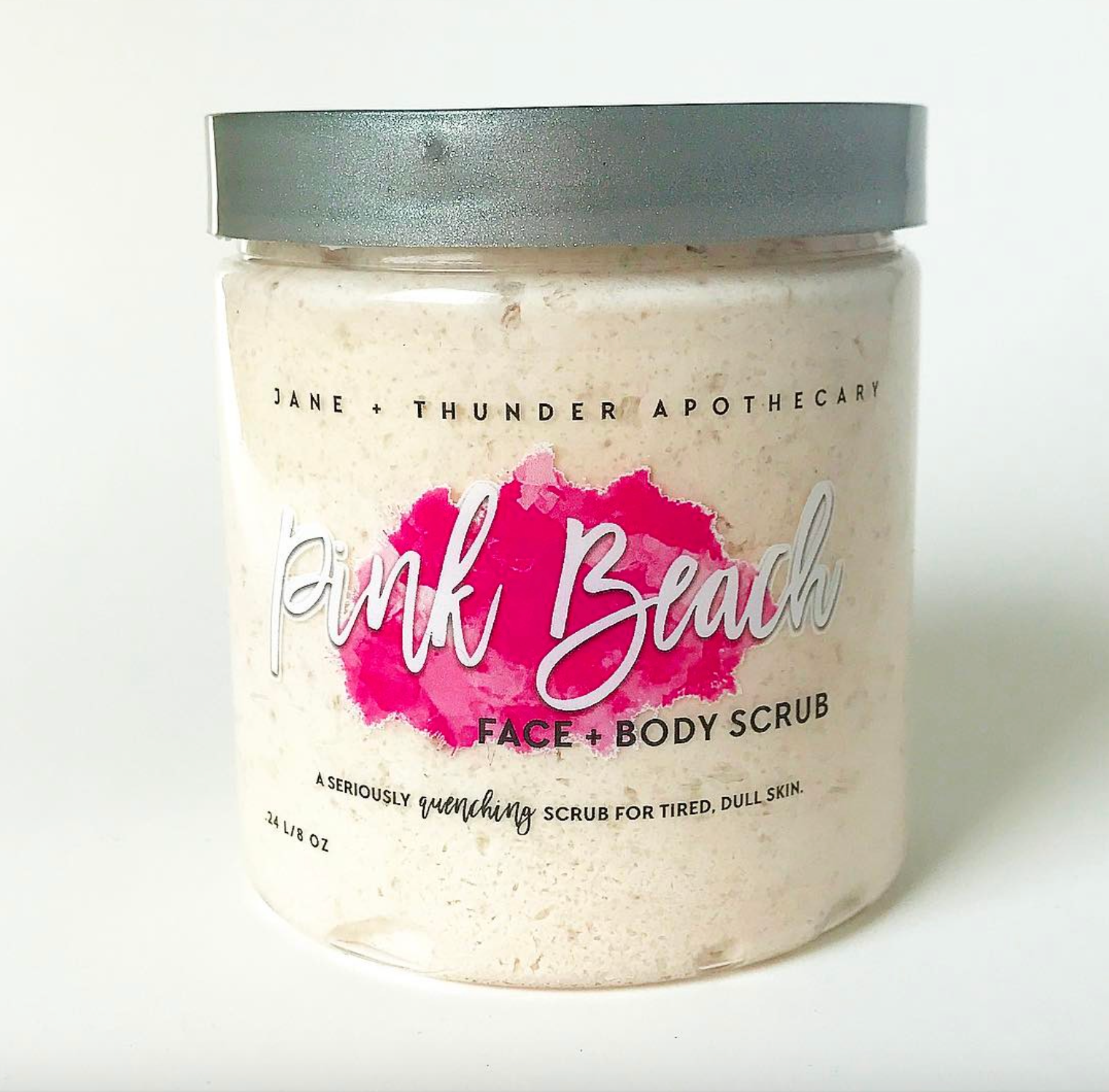 Our Pink Beach Face + Body Scrub is here to help tired skin.